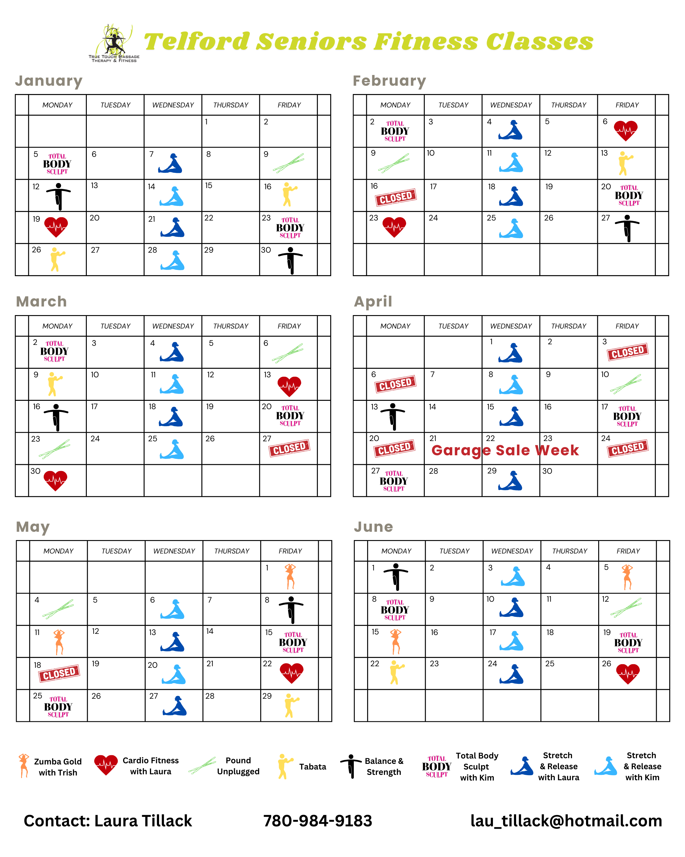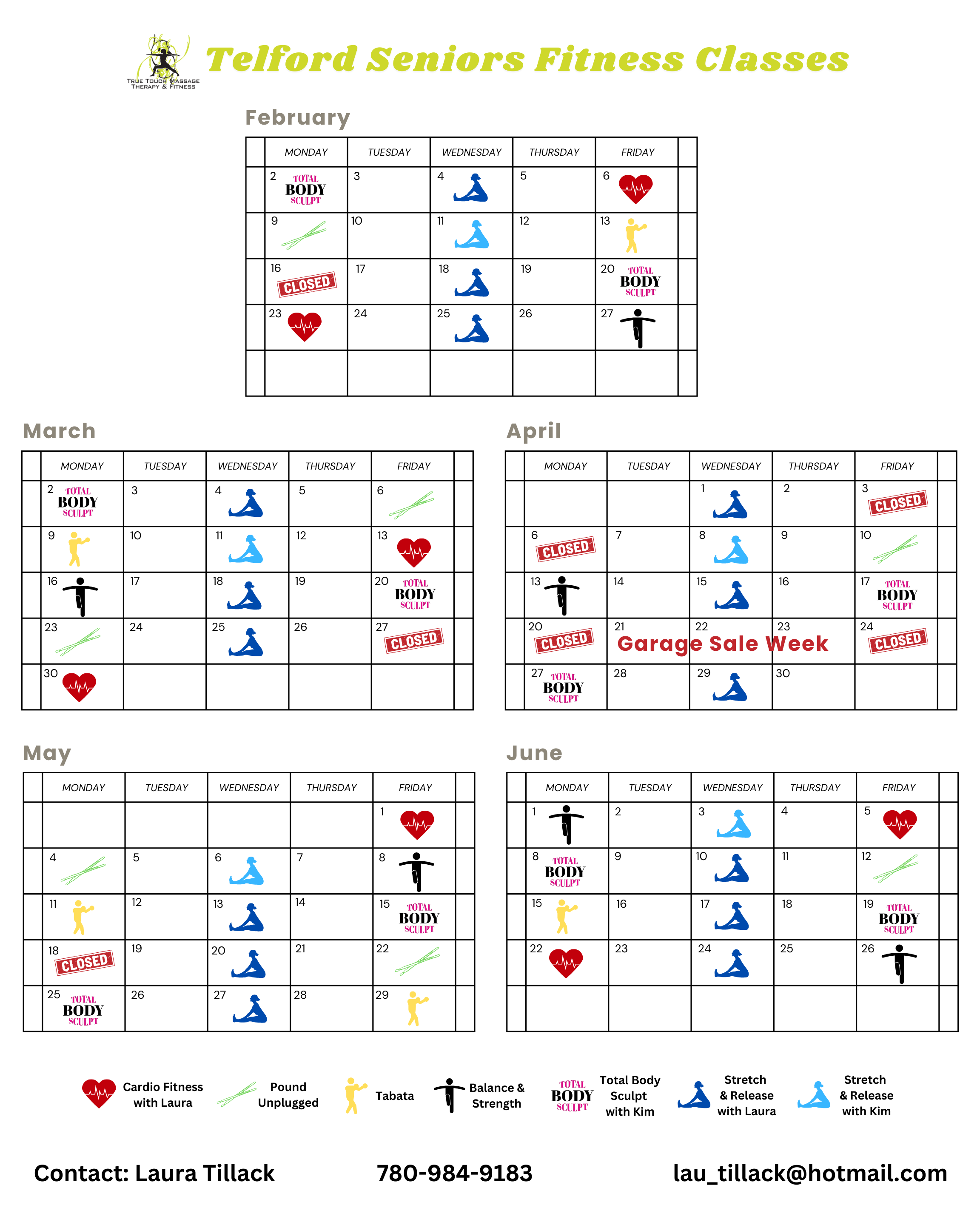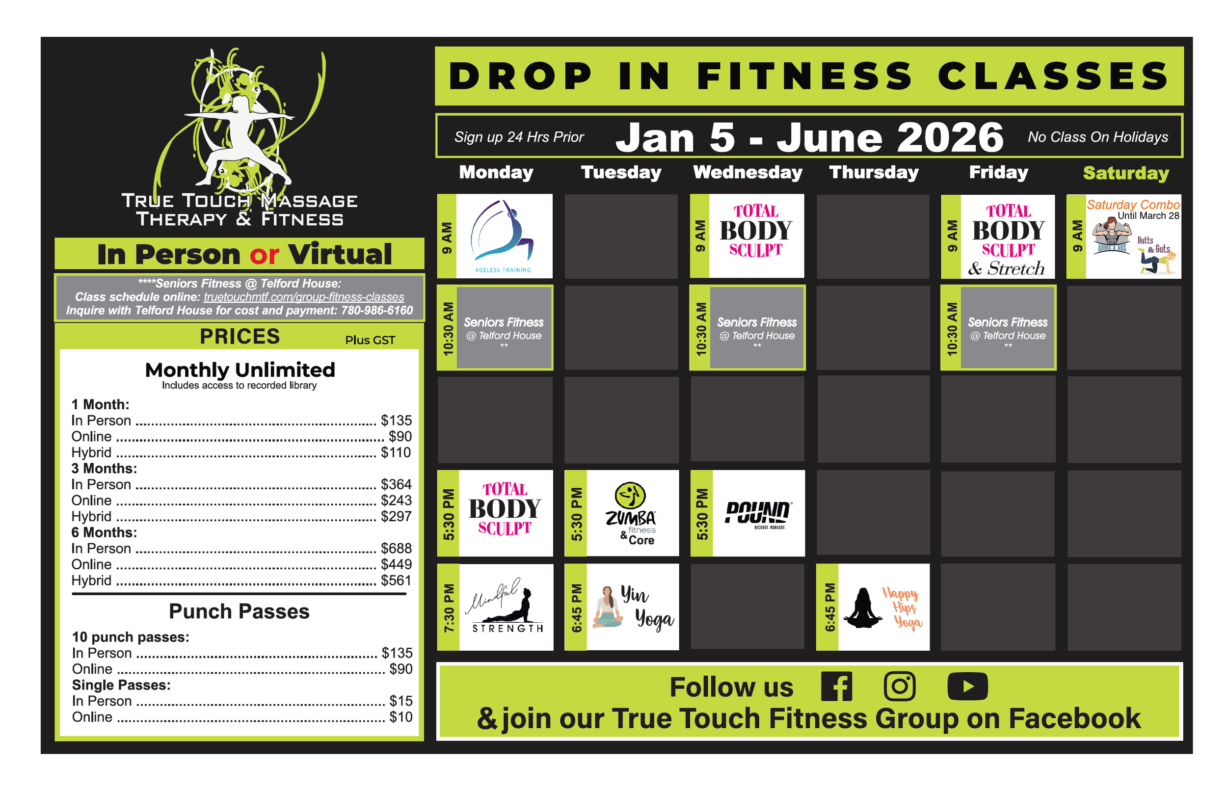 True Touch Studio Schedule & Telford House Seniors Schedule (scroll down for Telford)